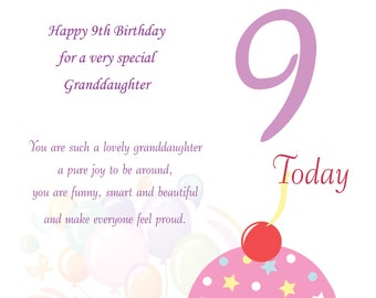 Granddaughter 9th Birthday Card Age 9 Have A Lovely Day Nail