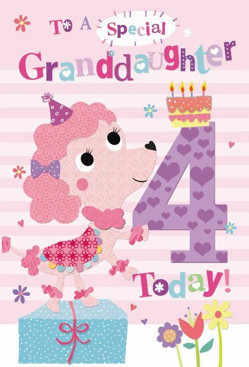4th Birthday Card GRANDDAUGHTER 4 Today 9 x 6.25 Inches