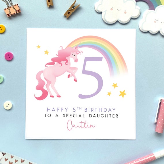Personalised Unicorn 5th Birthday Card for Girl, Daughter