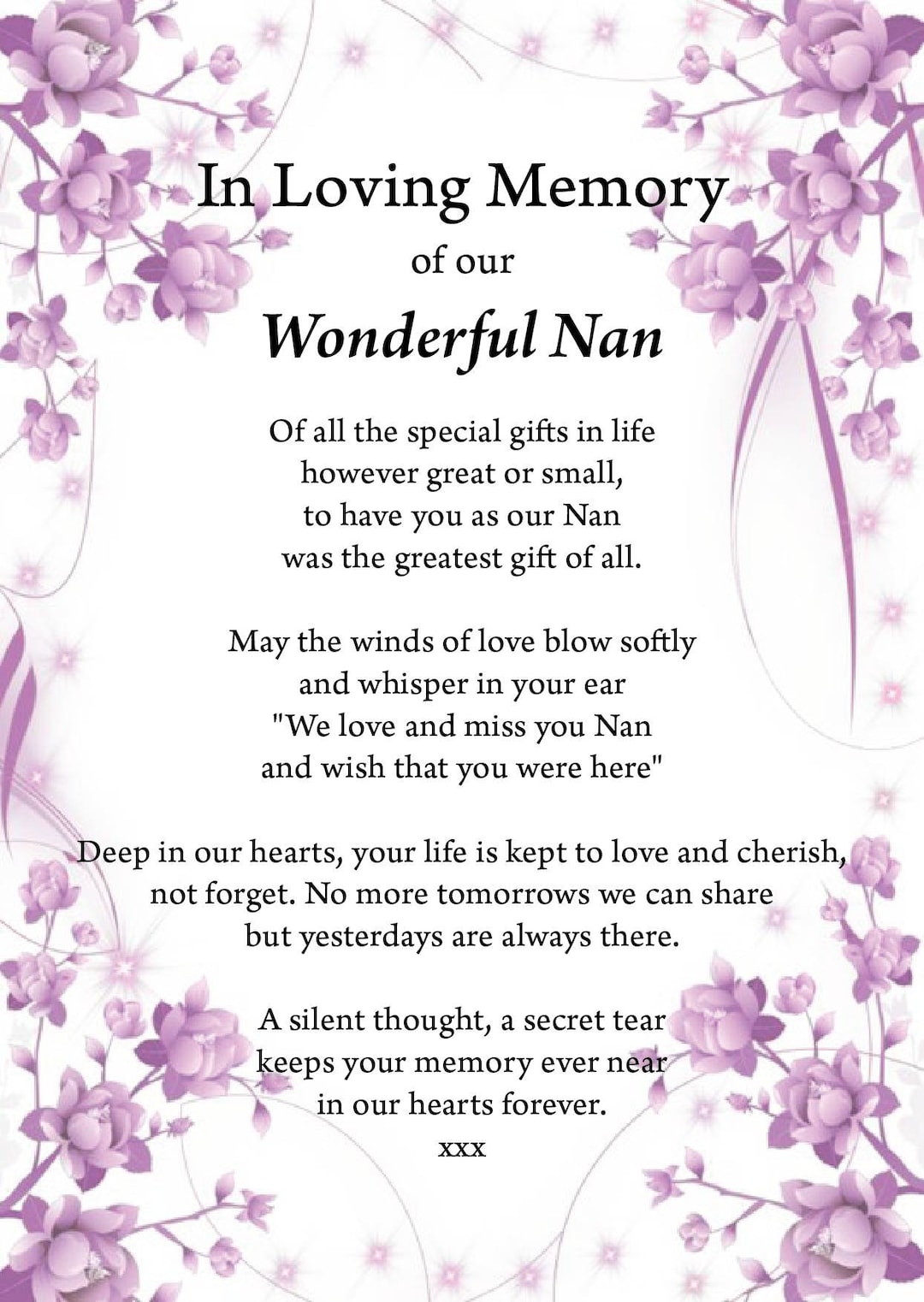 Nan in Loving Memory Print, Miss You Nan, Funeral Poem, Missing